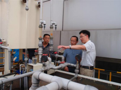 在金山環(huán)保董事長錢盤生、南方泵業(yè)執(zhí)行總經(jīng)理魯炯、副總經(jīng)理姚文彪等領(lǐng)導的陪同下,施秘書長等一行領(lǐng)導先后參觀了公司的新技術(shù)與裝備展示區(qū)、公司承建的大型工程展示中心、小試及中試裝置等設(shè)施,并重點實地考察了公司國內(nèi)首創(chuàng)的太陽能低溫復合膜處理污泥及餐廚垃圾的技術(shù)示范基地。