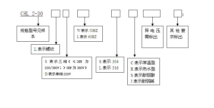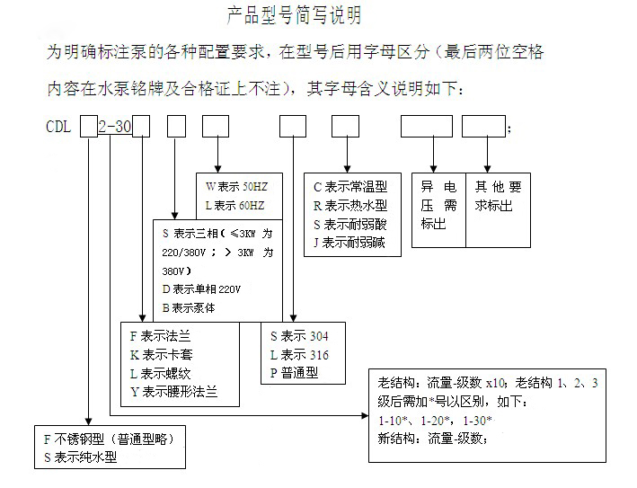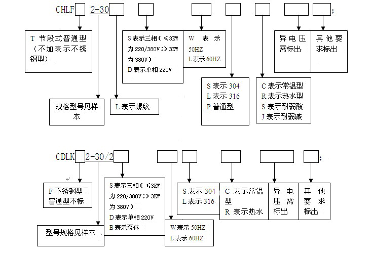 下面南方泵業廠家就為大家講解一下,CDL/CDLF系列、CHL/CHLF系列、CDLK系列立式多級泵產品型號的說明: