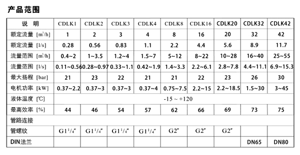 CDLK/CDLKF 為安裝標準電機的非自吸式多級離心泵,電機軸通過泵頭用聯軸器直接與泵軸聯接,泵可根據需要配置智能保護器,對泵干轉、缺相、過載等進行有效保護。